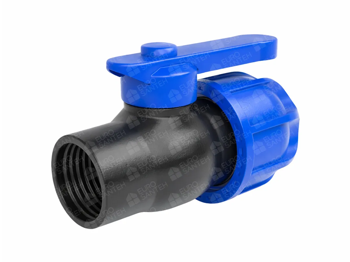 The compression connection is engineered for easy installation: the valve is secured to the pipe by uniform clamping, creating a reliable joint without specialized equipment. This solution works particularly well where fast installation and on-site serviceability matter—at a summer house, private home, farm, or greenhouse. The polyethylene body is corrosion-resistant and withstands outdoor exposure, so it performs reliably in areas where metal components wear out faster: wet chambers, outdoor valve boxes, pits, and open distribution points.