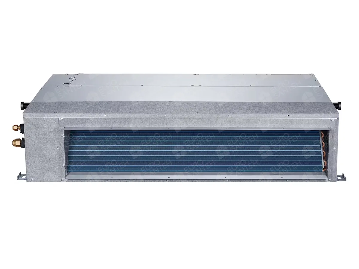 Midea MTIU-12HWFNX-QRD0W(GA) (12000 BTU) is an inverter ducted indoor unit designed for concealed installation above a suspended ceiling. It is an optimal choice for offices, commercial spaces, studios, and apartments where a clean interior without wall-mounted units matters, and where air needs to be distributed evenly across zones via ductwork. Thanks to its low height, the model can be installed conveniently even in rooms with low ceilings.