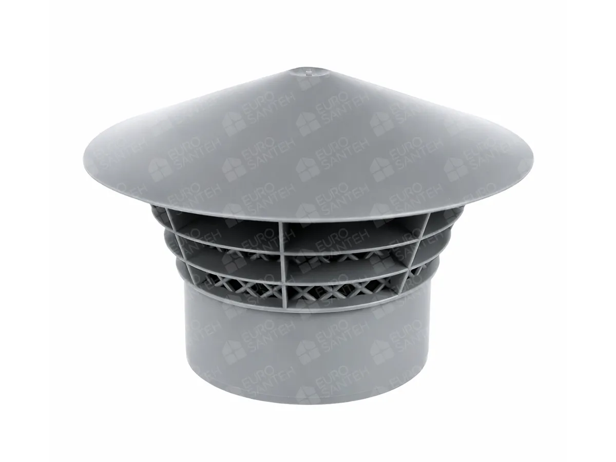 Capătul de ventilare (pălărie de ventilație) Ø100 este un element practic și necesar pentru funcționarea corectă a coloanei de aerisire (țeava de ventilare a canalizării) care se evacuează deasupra acoperișului. Rolul principal este să protejeze partea superioară a țevii de canalizare împotriva precipitațiilor (ploaie, zăpadă, grindină), frunzelor, insectelor și a impurităților accidentale, fără a bloca ventilația canalizării. Datorită orificiilor tehnologice de pe partea interioară a capacului, coloana își păstrează schimbul liber de aer cu atmosfera — ceea ce ajută sistemul să funcționeze stabil și să nu „împingă” mirosurile în interiorul încăperilor.