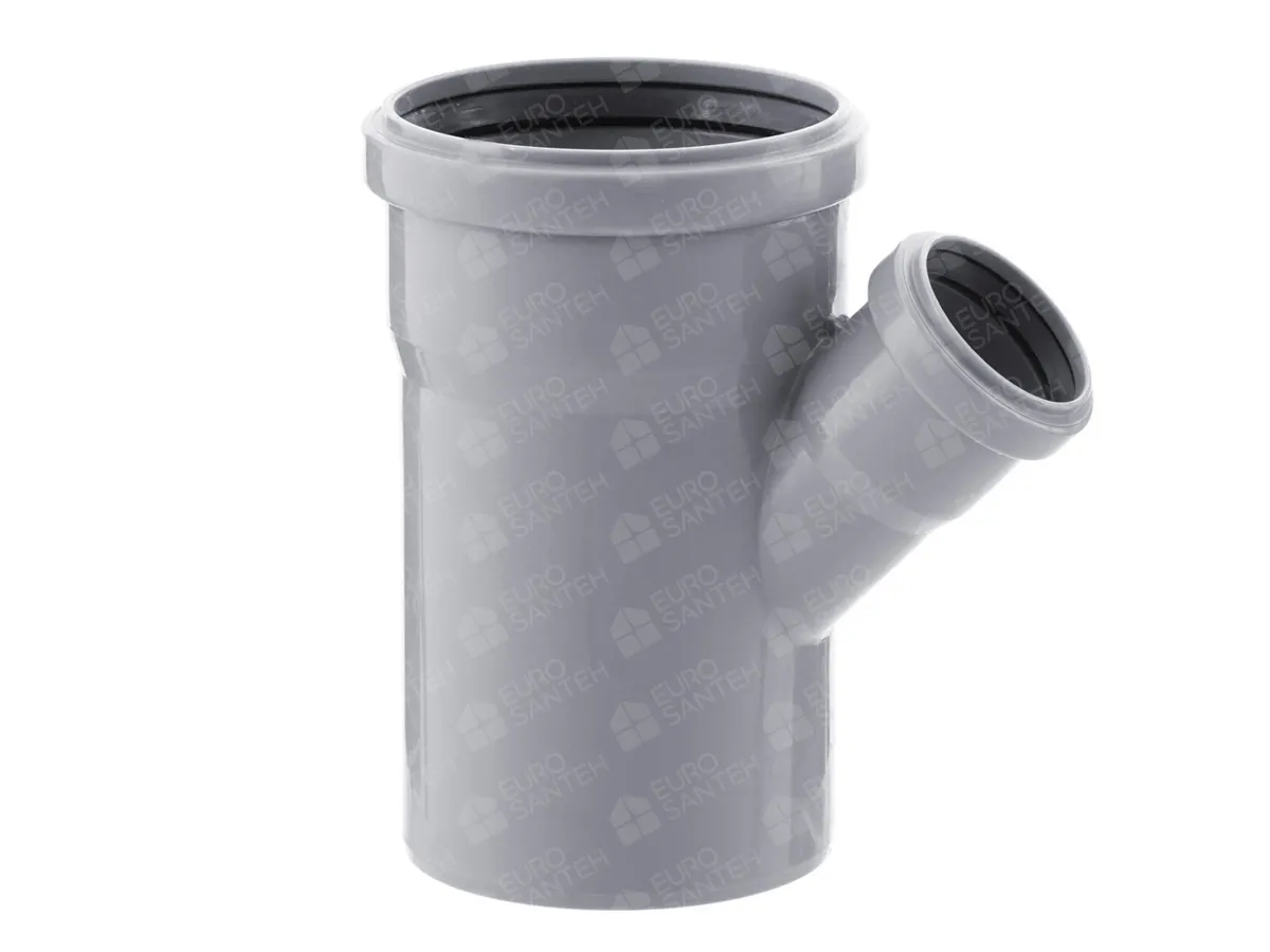 Teul de canalizare PPR (PP) 45° Ø110ר75ר110 este un fitting de tranziție în formă de „T” pentru canalizarea interioară, destinat realizării unei ramificații ordonate de la magistrala Ø110 mm către țeava Ø75 mm la un unghi de 45°. Acest unghi este considerat cel mai practic pentru sistemele gravitaționale: apele uzate curg lin, fără turbulențe puternice, ceea ce ajută la menținerea unei capacități stabile de curgere și reduce riscul depunerilor în zona îmbinării. De aceea, teurile la 45° sunt alese frecvent în noduri unde contează fiabilitatea, funcționarea „silențioasă” a canalizării și un risc minim de înfundări.