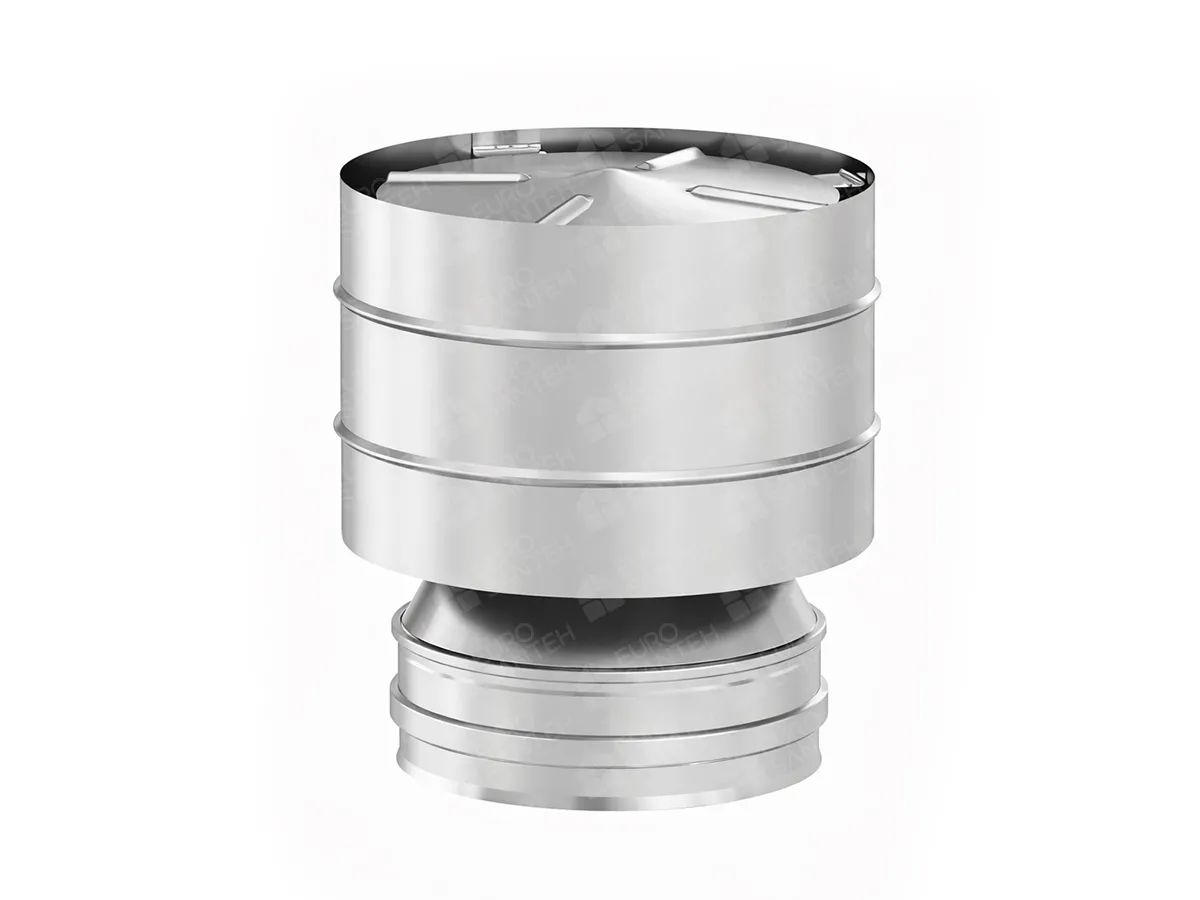 Oțelul inoxidabil AISI 304 (inox 304) este rezistent la coroziune și la mediu umed, suportă bine solicitările termice și nu necesită acoperiri suplimentare. Acest tip de capăt este potrivit pentru case particulare, băi/saune și centrale, unde se apreciază durabilitatea și aspectul îngrijit al coșului. Diametrul Ø180 se alege în funcție de țeava corespunzătoare — potrivirea dimensiunilor este importantă pentru o așezare corectă și pentru funcționarea corectă a sistemului de evacuare.